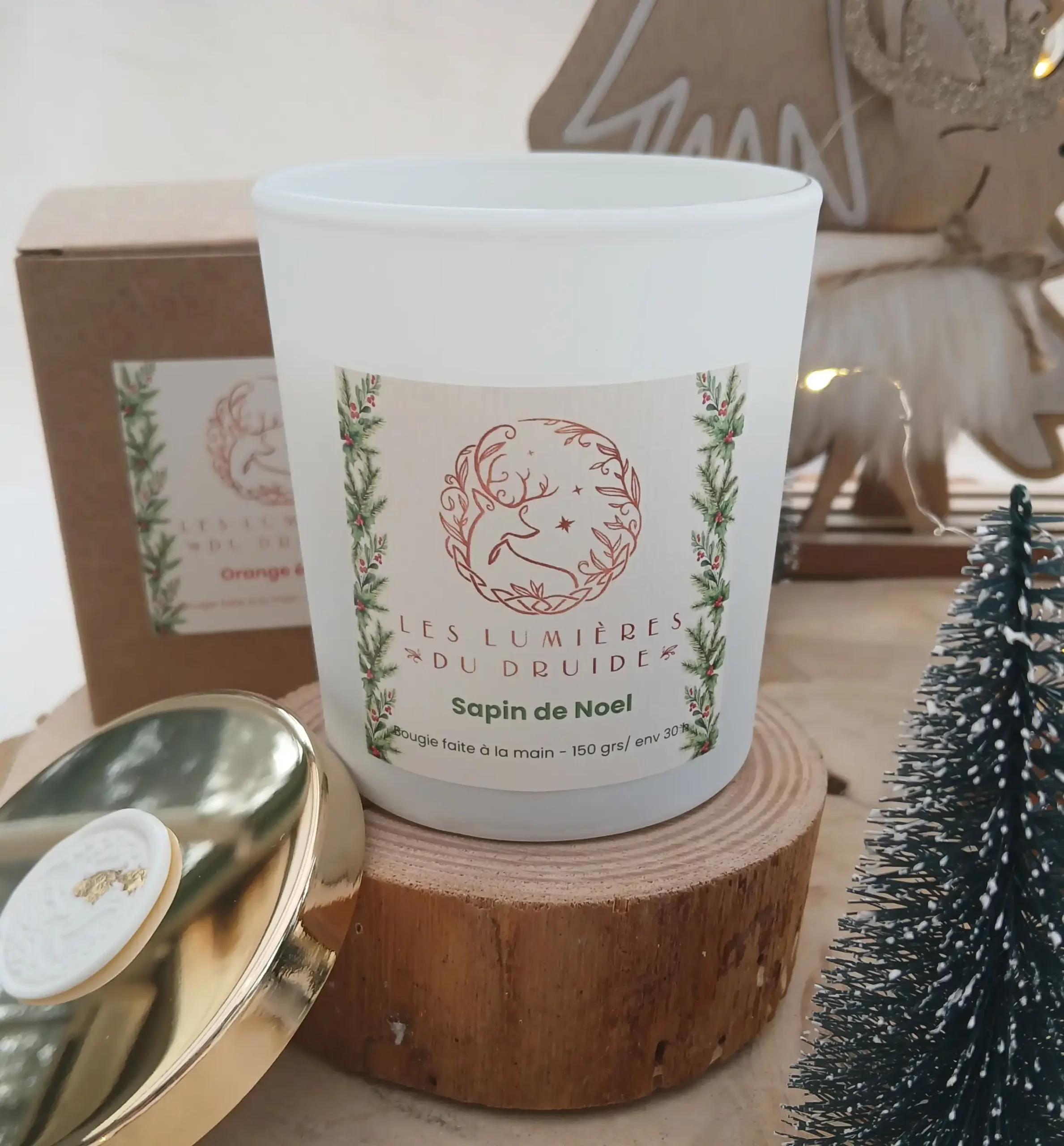 Présentée dans un pot blanc immaculé surmonté d’un couvercle doré étincelant, cette bougie de Noël incarne l’alliance parfaite entre raffinement et féerie hivernale. Son design épuré rappelle la pureté des paysages d’hiver, tandis que l’or évoque la lumière sacrée des fêtes celtiques.